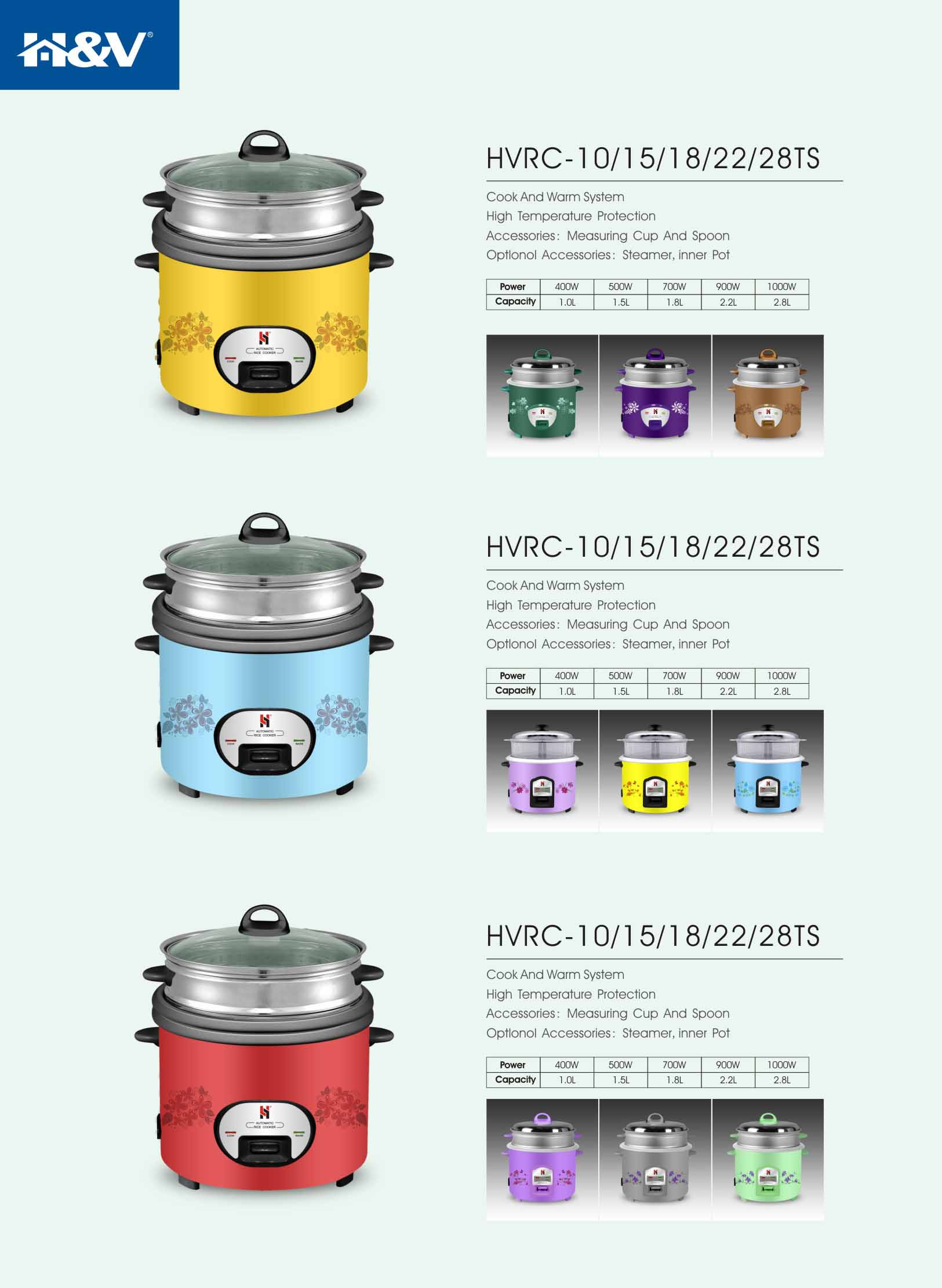 Capacity 1.0L 1.5L 1.8L 2.2L 2.8L Frequency 50/60Hz